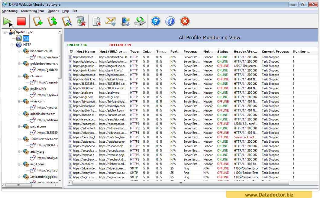 Website uptime monitoring software allows user to check website status including uptime, downtime and ping status in real time. Now it is possible to keep watch on websites status created on HTTP, HTTPS, SMTP, POP and FTP profile.